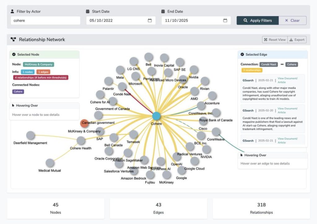 This data can be used to uncover close financial relationships among AI organizations, including cross-investments and circular investments.