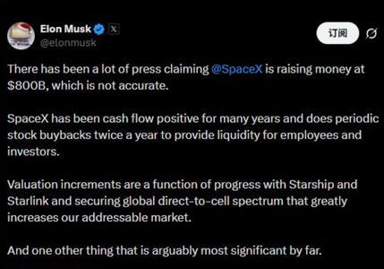Musk posted on his social media platform X: “SpaceX has had positive cash flow for many years and conducts stock buybacks twice a year on a regular basis to provide liquidity for employees and investors.”